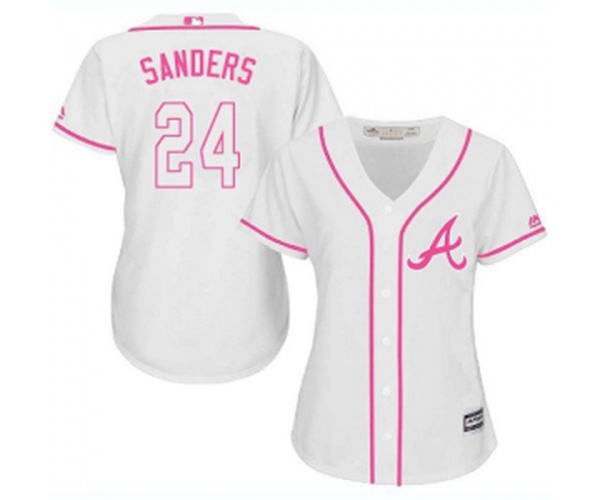 Womens Atlanta Braves #24 Deion Sanders Replica White Fashion Cool Base Baseball Jersey