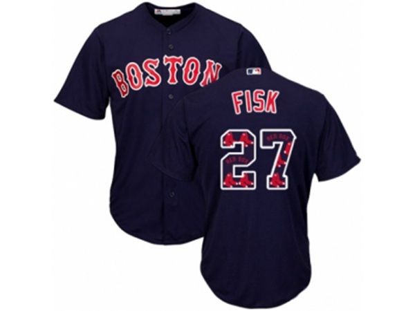 Boston Red Sox #27 Carlton Fisk Authentic Navy Blue Team Logo Fashion Cool Base MLB Jersey