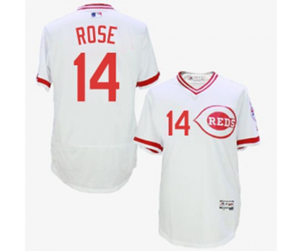 Cincinnati Reds #14 Pete Rose White Flexbase Authentic Collection Cooperstown Baseball Jersey