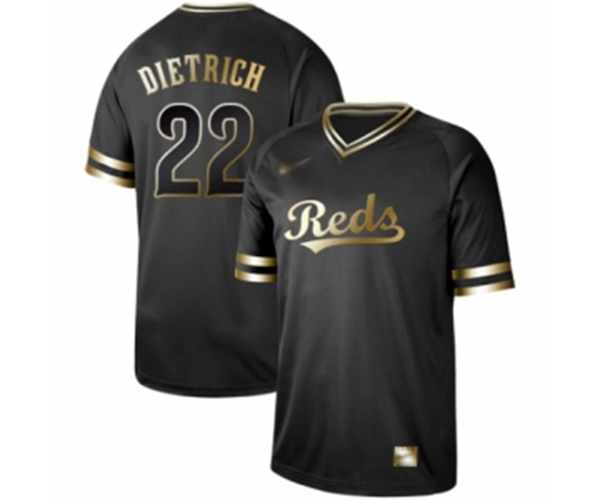 Cincinnati Reds #22 Derek Dietrich Authentic Black Gold Fashion Baseball Jersey