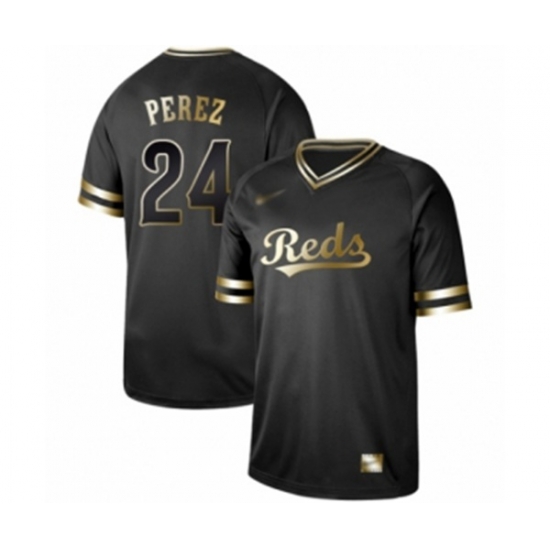 Cincinnati Reds #24 Tony Perez Authentic Black Gold Fashion Baseball Jersey