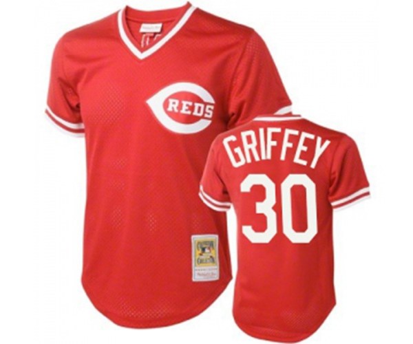 Cincinnati Reds #30 Ken Griffey Authentic Red Throwback Baseball Jersey