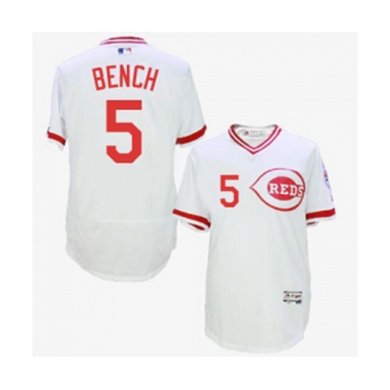 Cincinnati Reds #5 Johnny Bench White Flexbase Authentic Collection Cooperstown Baseball Jersey