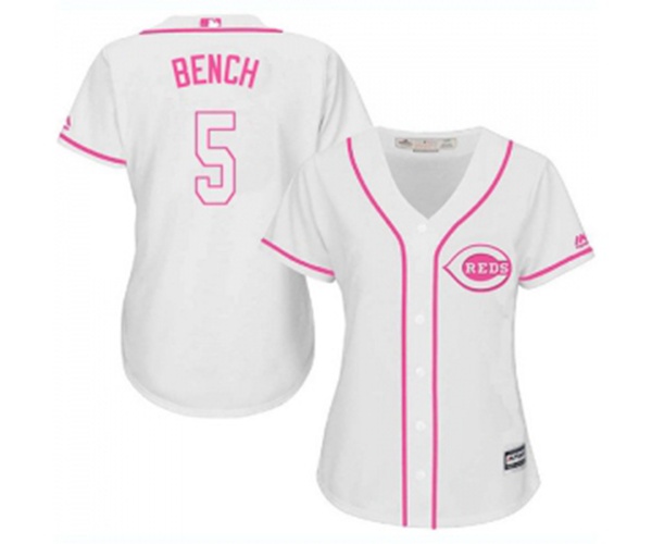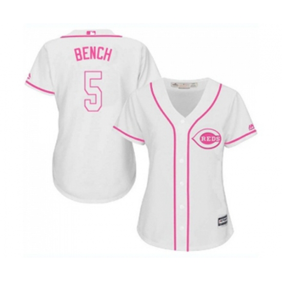 Womens Cincinnati Reds #5 Johnny Bench Replica White Fashion Cool Base Baseball Jersey