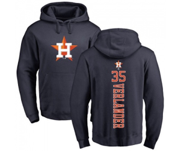 Houston Astros #35 Justin Verlander Navy Blue Backer Pullover Hoodie