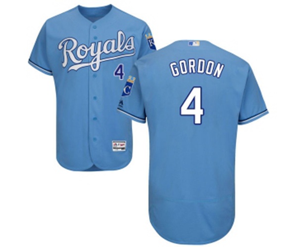 Kansas City Royals #4 Alex Gordon Light Blue Alternate Flex Base Authentic Collection Baseball Jersey