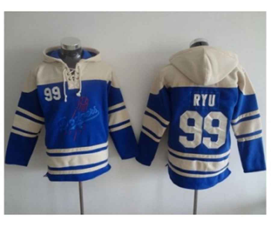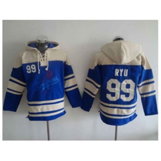Los Angeles Dodgers #99 Hyun-Jin Ryu Blue Sawyer Hooded Sweatshirt MLB Hoodie