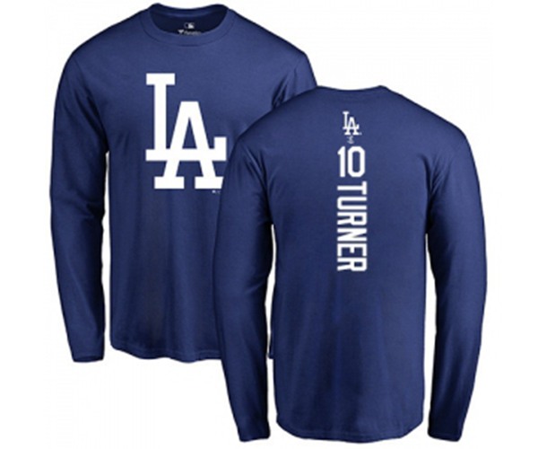 Los Angeles Dodgers #10 Justin Turner Royal Blue Backer Long Sleeve T-Shirt