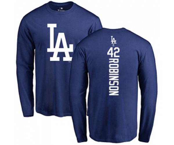 Los Angeles Dodgers #42 Jackie Robinson Royal Blue Backer Long Sleeve T-Shirt