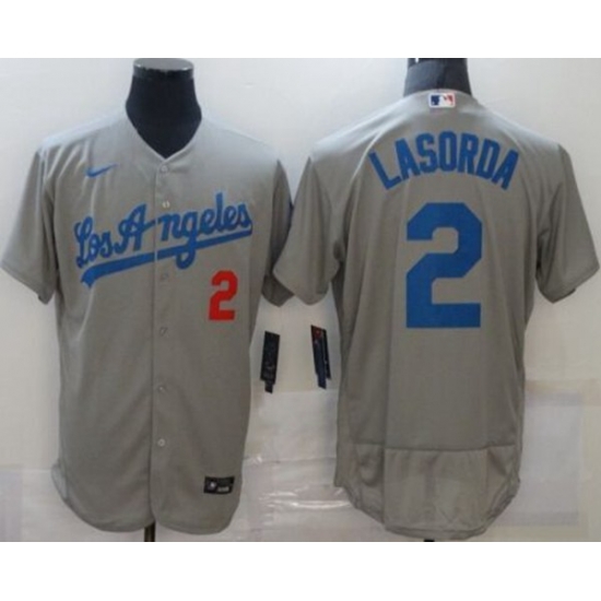 Los Angeles Dodgers #2 Tommy Lasorda Nike Gray Jersey