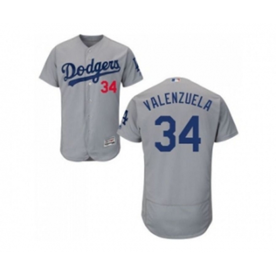 Los Angeles Dodgers #34 Fernando Valenzuela Grey Flexbase Authentic Collection Stitched Baseball Jersey
