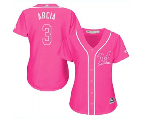 Womens Milwaukee Brewers #3 Orlando Arcia Authentic Pink Fashion Cool Base Baseball Jersey