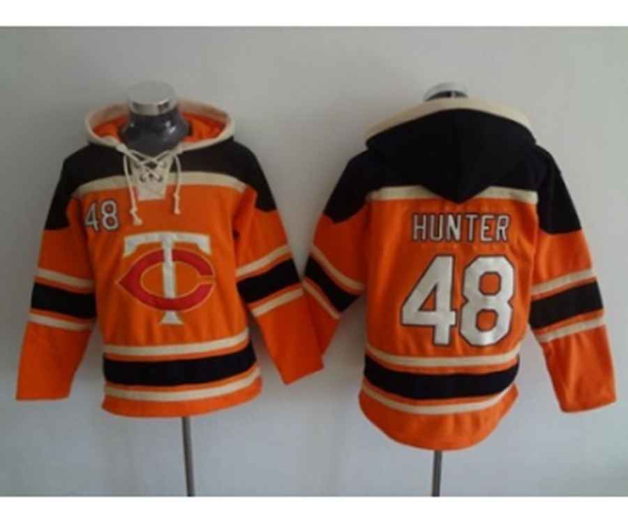 Minnesota Twins #48 Torii Hunter Orange Sawyer Hooded Sweatshirt MLB Hoodie