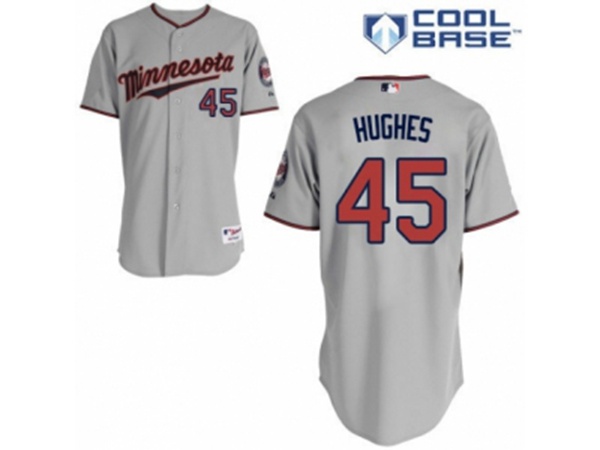 Minnesota Twins #45 Phil Hughes Replica Grey Road Cool Base MLB Jersey