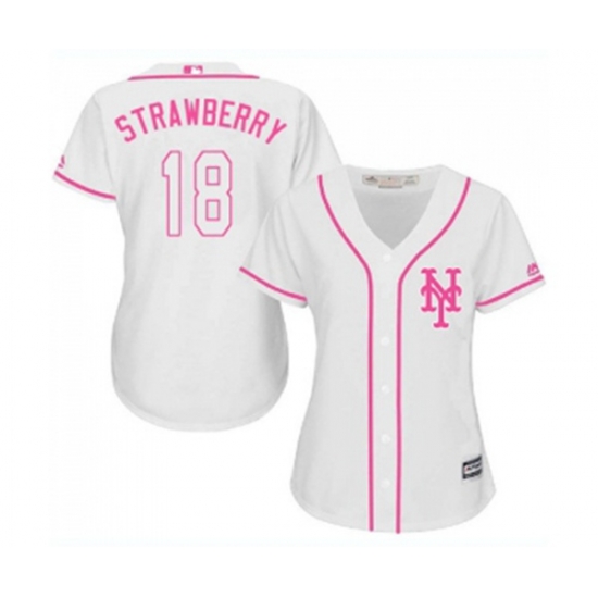 Womens New York Mets #18 Darryl Strawberry Authentic White Fashion Cool Base Baseball Jersey
