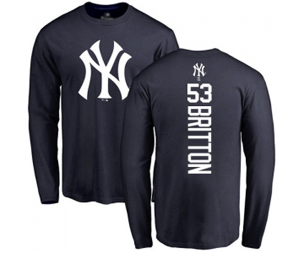 Baseball New York Yankees #53 Zach Britton Navy Blue Backer Long Sleeve T-Shirt