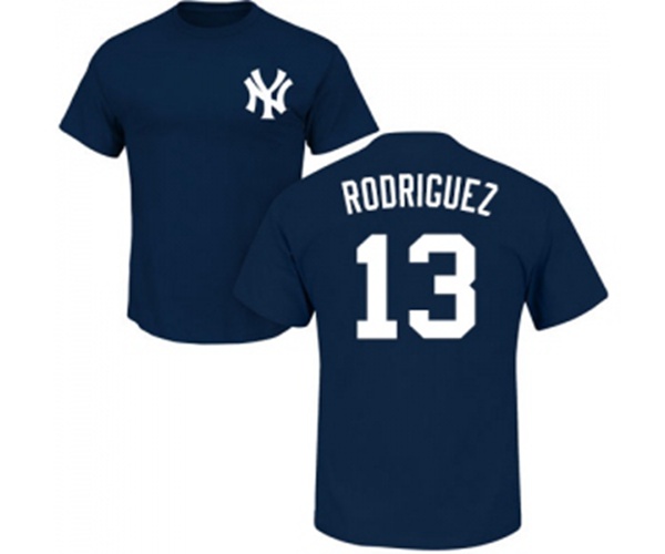 MLB Nike New York Yankees #13 Alex Rodriguez Navy Blue Name & Number T-Shirt