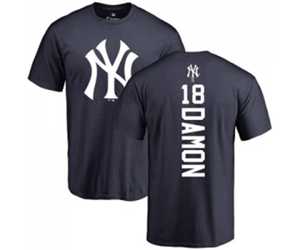 MLB Nike New York Yankees #18 Johnny Damon Navy Blue Backer T-Shirt
