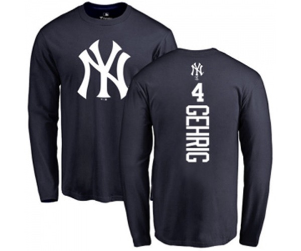 MLB Nike New York Yankees #4 Lou Gehrig Navy Blue Backer Long Sleeve T-Shirt