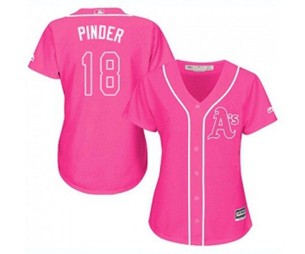 Womens Oakland Athletics #18 Chad Pinder Authentic Pink Fashion Cool Base Baseball Jersey