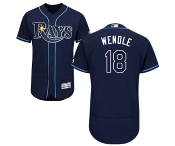 Tampa Bay Rays #18 Joey Wendle Navy Blue Alternate Flex Base Authentic Collection Baseball Jersey