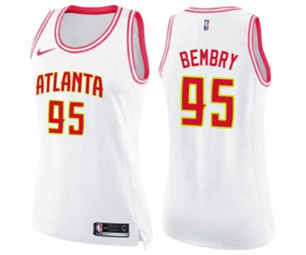 - Womens Atlanta Hawks #95 DeAndre Bembry Swingman White Pink Fashion Basketball Jersey