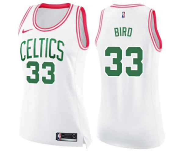 - Womens Boston Celtics #33 Larry Bird Swingman White Pink Fashion Basketball Jersey