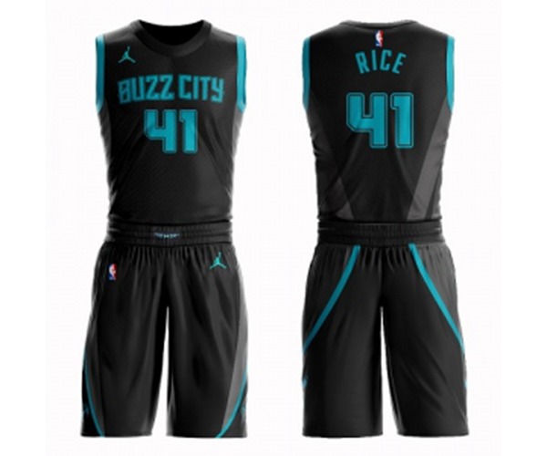 - Charlotte Hornets #41 Glen Rice Swingman Black Basketball Suit Jersey - City Edition