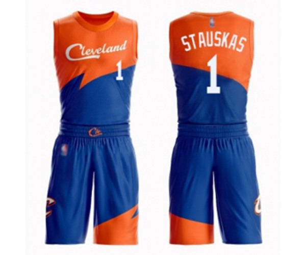 Cleveland Cavaliers #1 Nik Stauskas Authentic Blue Basketball Suit Jersey - City Edition