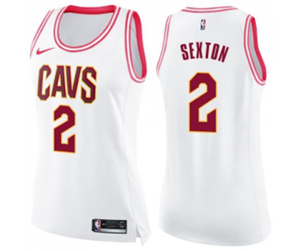 Womens Cleveland Cavaliers #2 Collin Sexton Swingman White Pink Fashion Basketball Jersey