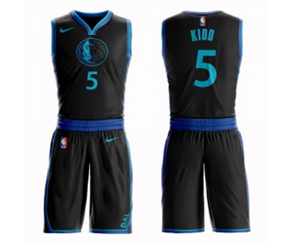 - Dallas Mavericks #5 Jason Kidd Authentic Black Basketball Suit Jersey - City Edition