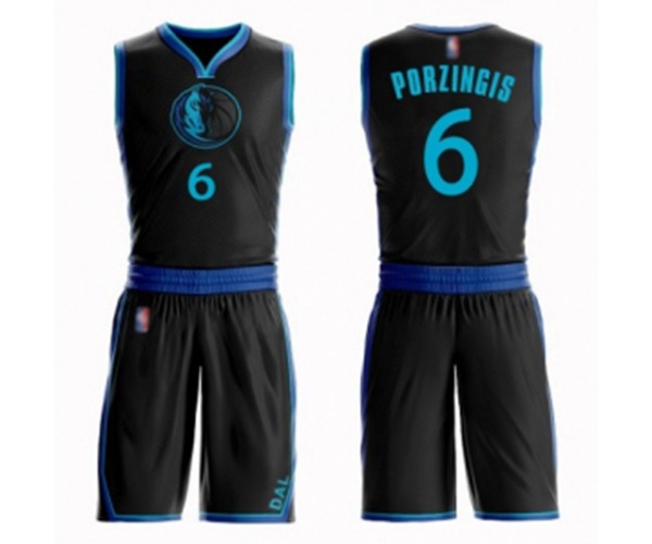 Dallas Mavericks #6 Kristaps Porzingis Swingman Black Basketball Suit Jersey - City Edition