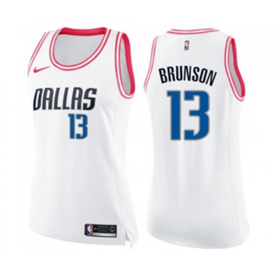 Womens Dallas Mavericks #13 Jalen Brunson Swingman White Pink Fashion Basketball Jersey