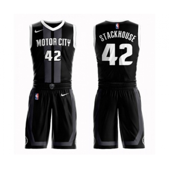 Detroit Pistons #42 Jerry Stackhouse Authentic Black Basketball Suit Jersey - City Edition