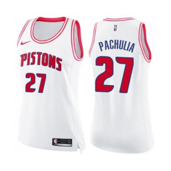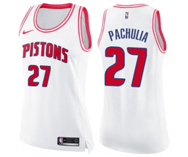 - Womens Detroit Pistons #27 Zaza Pachulia Swingman White Pink Fashion Basketball Jersey