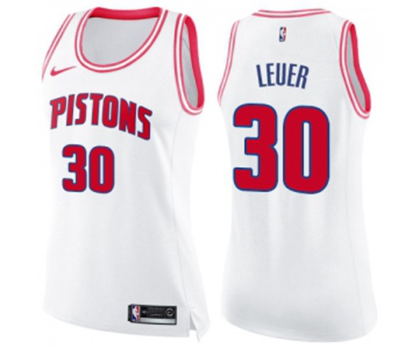 Womens Detroit Pistons #30 Jon Leuer Swingman White Pink Fashion Basketball Jersey