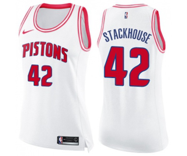 - Womens Detroit Pistons #42 Jerry Stackhouse Swingman White Pink Fashion Basketball Jersey