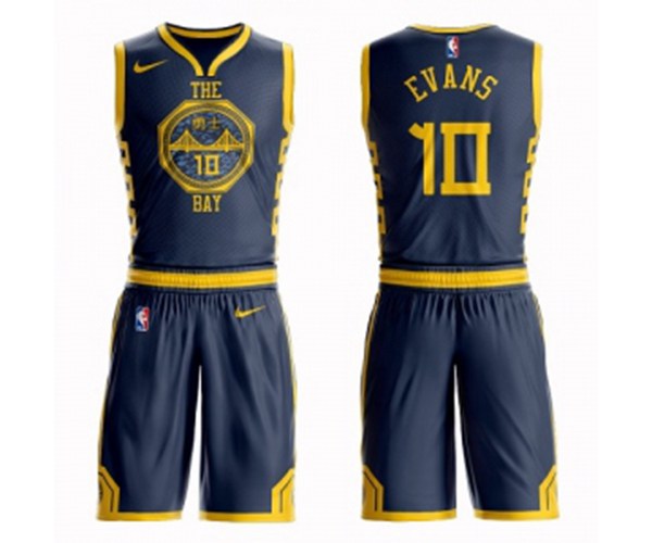 Golden State Warriors #10 Jacob Evans Authentic Navy Blue Basketball Suit Jersey - City Edition