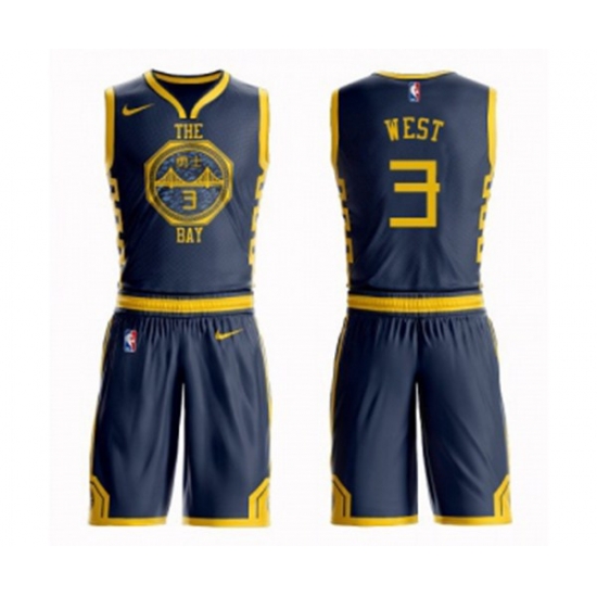 Golden State Warriors #3 David West Authentic Navy Blue Basketball Suit Jersey - City Edition