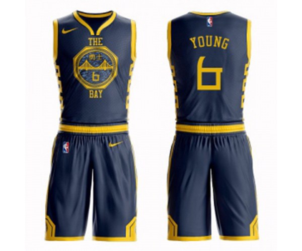 / Golden State Warriors #6 Nick Young Authentic Navy Blue Basketball Suit Jersey - City Edition