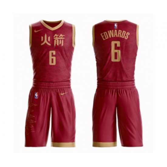 Houston Rockets #6 Vincent Edwards Authentic Red Basketball Suit Jersey - City Edition