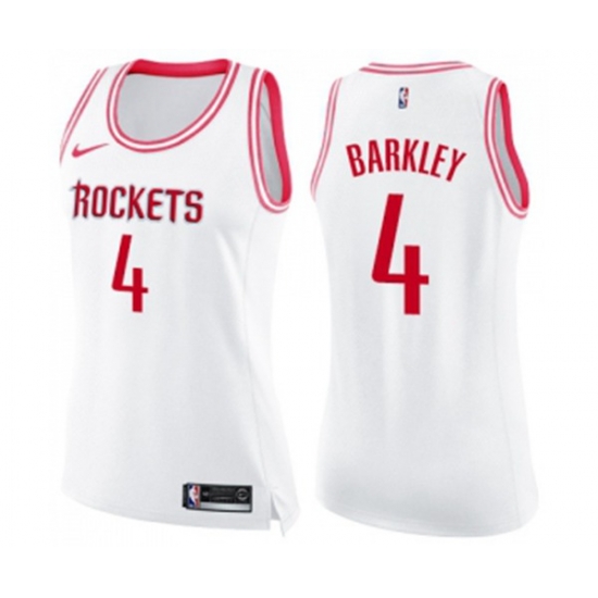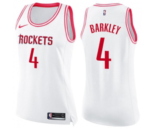 - Womens Houston Rockets #4 Charles Barkley Swingman White Pink Fashion Basketball Jersey