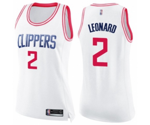 Womens Los Angeles Clippers #2 Kawhi Leonard Swingman White Pink Fashion Basketball Jersey