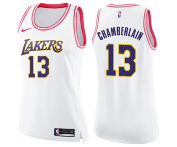 - Womens Los Angeles Lakers #13 Wilt Chamberlain Swingman White Pink Fashion Basketball Jersey