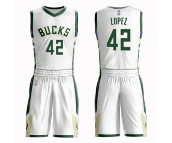 Milwaukee Bucks #42 Robin Lopez Authentic White Basketball Suit Jersey - Association Edition