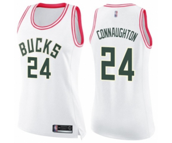 Womens Milwaukee Bucks #24 Pat Connaughton Swingman White Pink Fashion Basketball Jersey