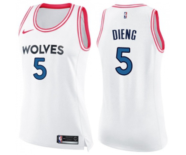 - Womens Minnesota Timberwolves #5 Gorgui Dieng Swingman White Pink Fashion Basketball Jersey