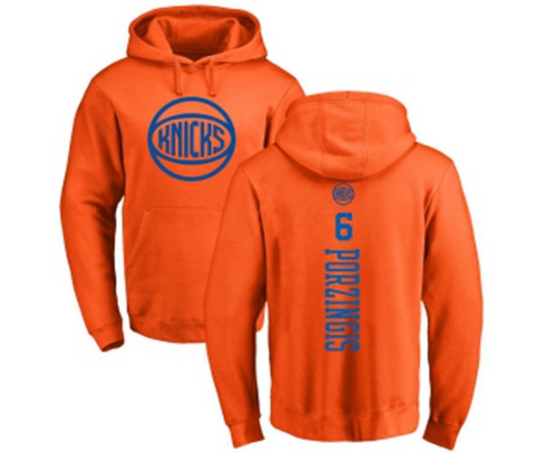 New York Knicks #6 Kristaps Porzingis Orange One Color Backer Pullover Hoodie