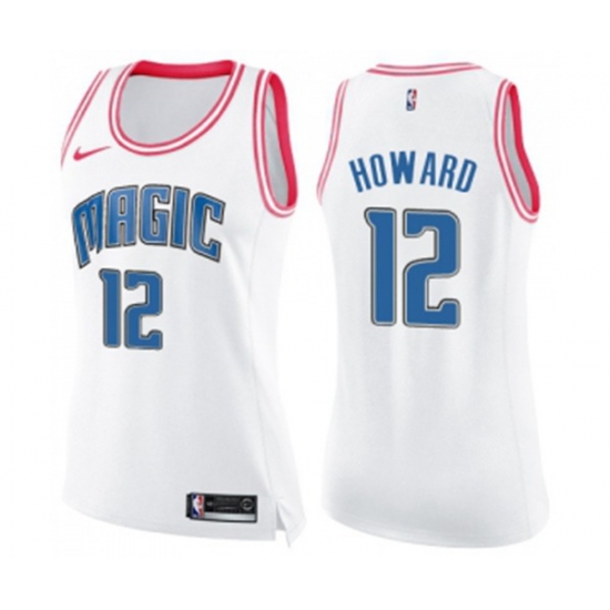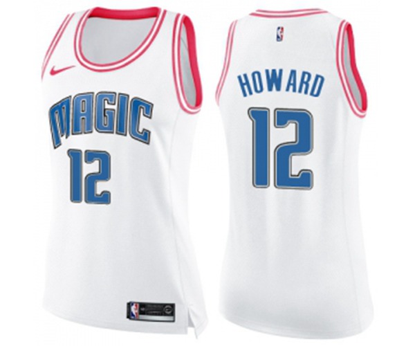 Womens Orlando Magic #12 Dwight Howard Swingman White Pink Fashion Basketball Jersey