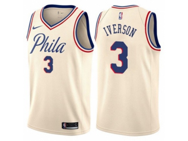 Philadelphia 76ers #3 Allen Iverson Authentic Cream NBA Jersey - City Edition